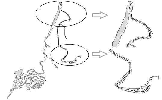 Для исследования был взят векторный полигон (рис. 6, а), представляющий собой один из притоков реки Северная Двина на территории Архангельской области.