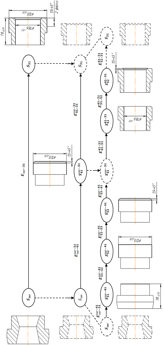 На рис. 8 представлена последовательность промежуточных состояний изделия для четвертого и пятого уровней управления для технологической операции, в рамках которой производится переход изделия из состояния Sзаг в состояние S31.
