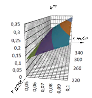 (при фиксированной глубине резания t1 = 0,6 мм) представлены на рис. 9, 10.