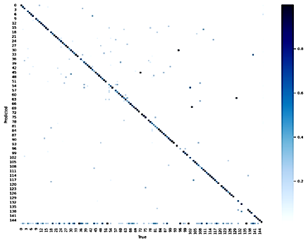 Согласно матрице ошибок, представленной на рис. 3, число ячеек, отклоняющихся от главной диагонали, незначительно, что также свидетельствует о корректности модели.