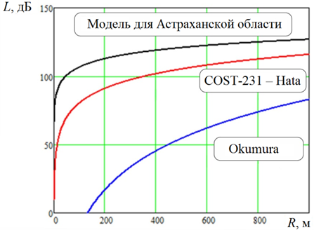 Таким образом, получены модели, отражающие новую зависимость уровней сигнала на входе приемного устройства от расстояния на малых дистанциях (до 1 000 м). Модели могут быть использованы в расчетах вышеуказанных значений для районов пригородной или открытой (сельской) местности в Астраханской области в диапазоне 2 100 МГц