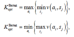 где величина v(ai, sj) приобретает либо значения полученной прибыли, либо исходы потери работы системы.