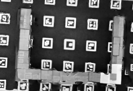 Для повышения точности моделирования предлагается использование динамических данных от беспилотных авиационных систем (квадрокоптеров). Благодаря им необходимо произвести фотосъемку и, обработав результаты в специальном программном обеспечении, получить готовую цифровую модель. Работа может проводиться и дистанционно, тем самым увеличивая скорость и безопасность проведения мониторинга. Кроме того, данный метод – один из самых высокопроизводительных способов аэрофотосъемки. Согласно схеме порта «Морской фасад» был разработан его макет и цифровая 3D-модель. Эксперименты по построению цифровой модели на основе данных от беспилотных авиационных систем выполнялись в лаборатории беспилотных авиационных систем инженерной школы Санкт-Петербургского государственного университета аэрокосмического приборостроения. Код автономного полета написан на языке Python. После проведения аэрофотосъемки тестового полигона полученные снимки были преобразованы в трехмерную модель поверхности с использованием программного обеспечения Metashape [18], результаты приведены на рис. 9.