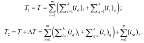 В соответствии с формулой (1) представим время, которое затрачивается на рейс при классической организации его работы, и время рейса с переформированием на маршруте следования так, как записано в формулах: