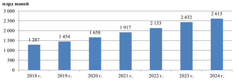 Рис. 2. Рынок интеллектуальной логистики транспорта «умных» городов Китая с прогнозом на 2024 г. [4]