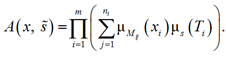 ∈ S’) можно определить через произведение сумм нечеткого множества сценариев , с различными функциями принадлежности μ01(x) и μ02(x), и терм-множества Ti, с нечеткими переменными, имеющими нечеткие значения признаков того или иного сценария из каталога для всех признаков m с именами Ni. Таким образом, принадлежность состояния ADS-системы к сценарию из карты сценариев можно выразить произведением сумм: