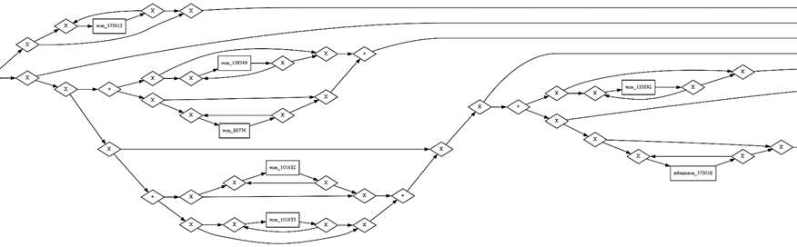 Для более подробного понимания процесса используется индуктивный алгоритм, который визуализирует процесс в нотации модели BPMN. На рис. 5 приведен фрагмент полученного графика.