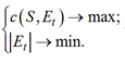 Пусть S обозначает набор данных для обучения с n экземплярами; F – множество всех признаков f1, f2, ..., fp. Определим некоторое подмножество признаков Et ⊂ F. Функция c(S, Et) вычисляет индекс согласованности (c-индекс) регрессионной модели Кокса, обученной S экземплярами с Et признаками. Количество признаков, используемых при обучении, определяется величиной |Et| – мощностью множества Et. Необходимо найти решение