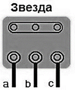 Рис. 2. Соединение статорной обмотки асинхронного двигателя с короткозамкнутым ротором «звездой»