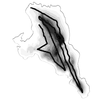 Fig. 4. Spatial distribution of vendace in Vishtynetskoe Lake according to hydroacoustic survey data of 2021