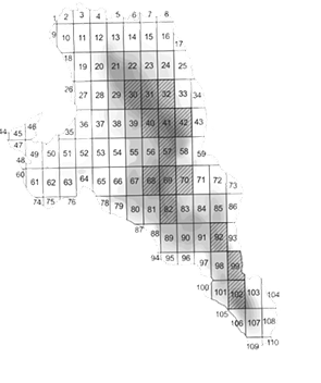 Despite the fact that vendace is generally confined to the deep-water areas of Lake Vishtynetskoe, the influence of abiotic and biotic factors on its spatial distribution may vary from year to year. In turn this can lead to the formation of aggregations with different density in the same parts of lake. In order to confirm this hypothesis and identify water body areas (in the form of fishing squares) in which high density concentrations of this species are always formed (over the series of observations), an analysis of its spatial distribution over several previous years was carried out.