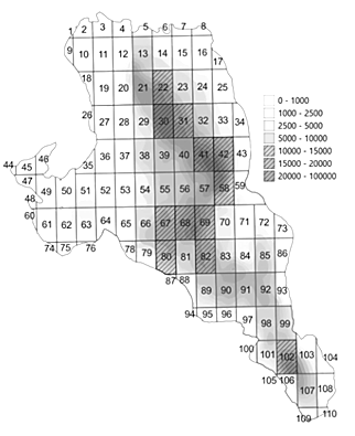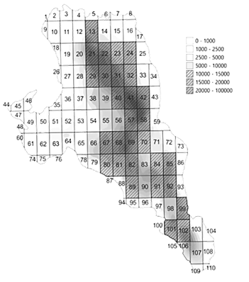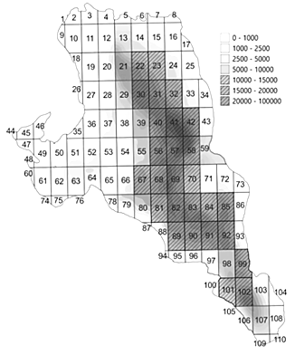 Fig. 10. Fishery squares with annual density