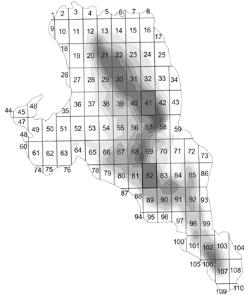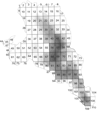 It is known that the efficiency of fishing, among other things, depends on the fish concentrations, the stability and places of formation of these aggregations [7, 8]. In this regard increasing of vendace catches can be facilitated by identifying areas of water area of Lake Vishtynetskoe in which high densities of vendace aggregations are observed annually. From the point of view of managing aquatic biological resources it is most convenient to use the existing division of the lake into fishing squares. During assessment of fishing areas, it is necessary to take into account the fact that the spatial distribution of vendace is influenced by abiotic and biotic factors and its effect can vary greatly from the year to year.