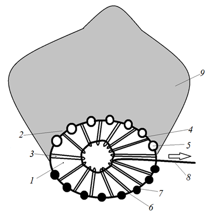 To date, there are various devices operating on different principles to keep the catch in the trawl, for example, during the development of the topic, we considered a device [2] that uses acoustic, sound and light emitters to scare away fish that moves in the direction of the trawl. The disadvantage lies in the complexity of the design, in particular when placing a branched route of live wires in the trawl structure and in the difficulty of using the device for different species of fish, since it requires tuning sound signals for each individual type of fish, and light pulse signals can, on the contrary, serve as bait for predatory fish species that will direct the fish to the mouth of the trawl. Or the second example [3] is represented by a flap, which is arranged according to the principle of a knapsack parachute and is activated by remote control. The parachute opens and shifts the catch into the depths of the trawl [4]. However, this catch loss prevention device is not applicable in the conditions of trawling by small vessels, since it cannot close the mouth without towing the trawl and prevent the loss of catch from the trawl. The second negative side of this solution is the rapidly occurring hydrodynamic resistance and a sharp decrease in the speed of the vessel occurs, in relation to small vessels, this device cannot be used, since there is no redundancy of the outboard motor power, as a result of which loss of catch is possible.