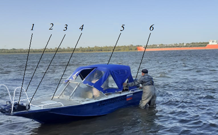 The vessel is equipped with an outboard Tohatsu outboard motor with a capacity of 30 l/s (22.1 kW), which, in combination with the Yuzhanka-2 hull, allows speeds of up to 45 km/h (Fig. 8).