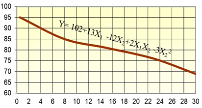 В результате математической обработки экспериментальных данных показателя динамической емкости цеолита по парам воды получили уравнение регрессии второго порядка (рис. 1).