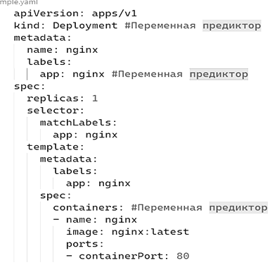 На рис. 2 представлен пример файла Kubernetes с соответствием переменных предикторов с реальными сущностями файла.