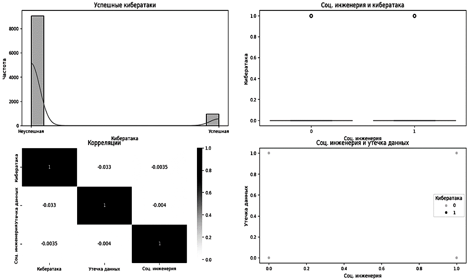 Box Plot для социальной инженерии и кибератаки позволяет оценить влияние социальной инженерии на кибератаки.