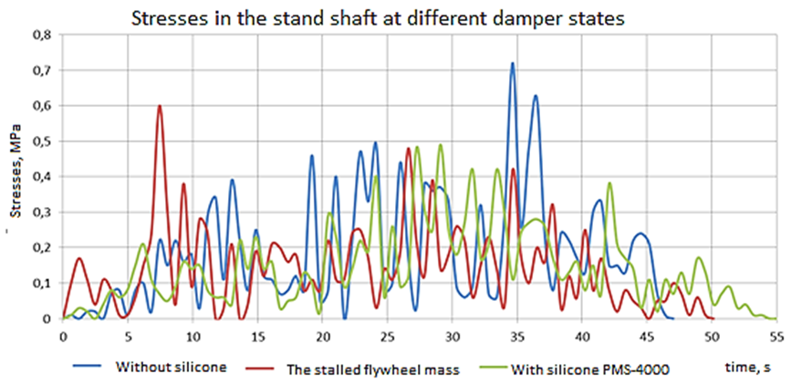Fig. 8. Graphs of stress development in the shaft of the laboratory stand depending