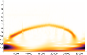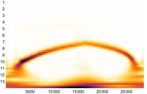 As a result of using the Wolfram Mathematica software product, scalograms were obtained, an example of which is shown in Fig. 5. Figure 6 shows the results of harmonic Fourier analysis to test the hypothesis of its limited use in this case.