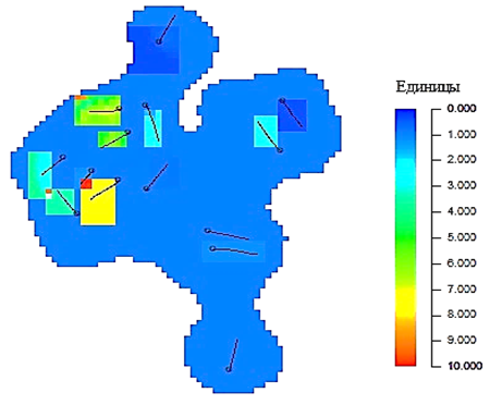 Рис. 2. Карта множителей на поровый объем (2014 г.)