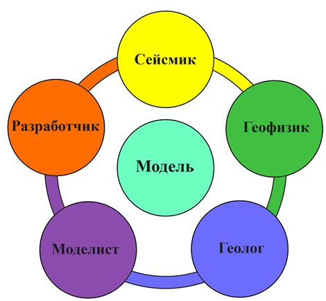 Для повышения эффективности и оперативности принятия решений по устранению несоответствий геолого-гидродинамических моделей рекомендуется реализация интегрированного подхода. Одним из решений данной проблемы является создание мультидисциплинарной команды (рис. 8), включающей специалистов по интерпретации сейсмических данных и геофизических исследований скважин, специалистов по геологии, по построению геолого-гидродинамических моделей, а также по проектированию разработки месторождений. По нашему мнению, такой подход приведет к повышению качества адаптации ГДМ и достоверности прогнозных показателей разработки.
