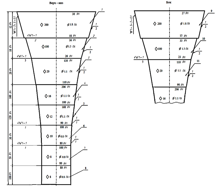 Рис. 6. Схема расположения тралового мешка в гидроканале ООО «Фишеринг Сервис»