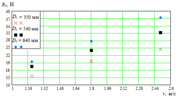 Для полученных данных были построены зависимости Rx от v (рис. 9, 10) при различном диаметре обруча.