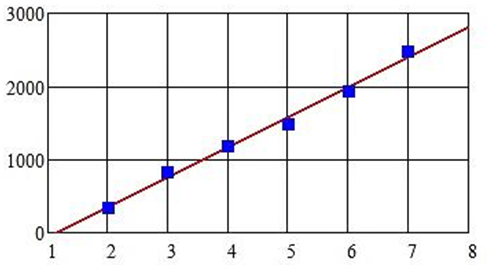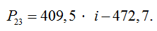 Прочность в момент времени t = 23 ч зависит от массовой доли (i) практически линейно (см. рис. 2), в таком случае уравнение линейной регрессии следующее: