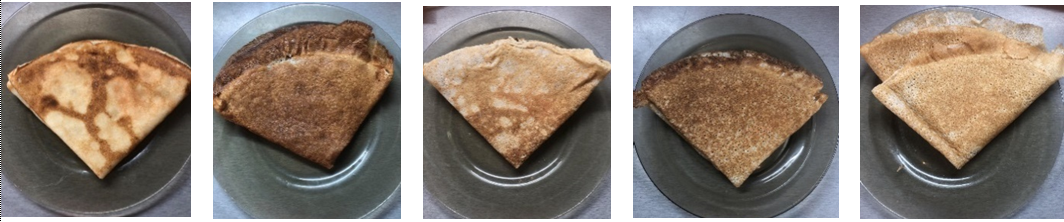 Рис. 5. Внешний вид контрольного (с пшеничной мукой) и опытных образцов блинов,