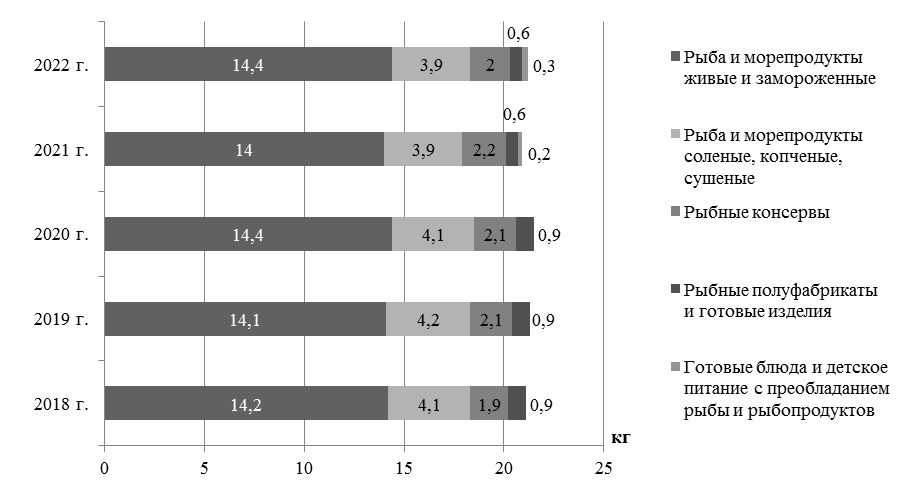 Рис. 1. Структура потребления рыбной продукции в России (в среднем на одного потребителя в год)