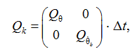 где Pk–1|k–1 – ошибка в прошлый момент времени; Qk – ковариационная матрица шума процесса: