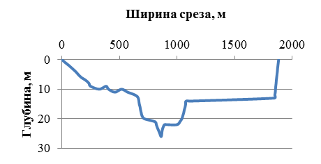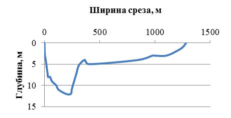 Исходя из проведенного анализа картографических источников и данных, полученных в ходе научной экспедиции в сентябре – начале октября 2024 г., в результате геодезических и гидрологических измерений, включающих практические промеры глубин, построены графические сечения профиля дна русел Исети и Чусовой (рис. 3).