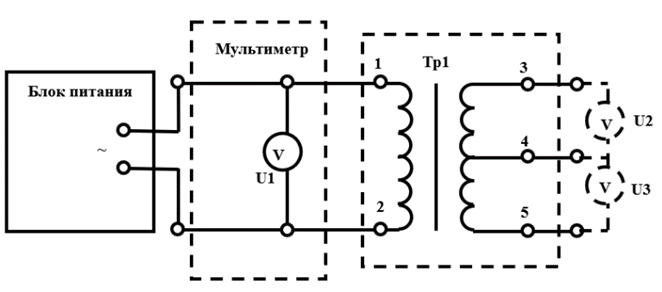 3-4 – sockets of the transformer secondary winding connected to the multimeter U2;