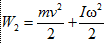 1. В начальном положении 1 исследуемая система обладает потенциальной энергией W1 = mgh1. Переходя в положение 2, учитывая кинетические энергии вращения шкива и движение груза, получаем:
